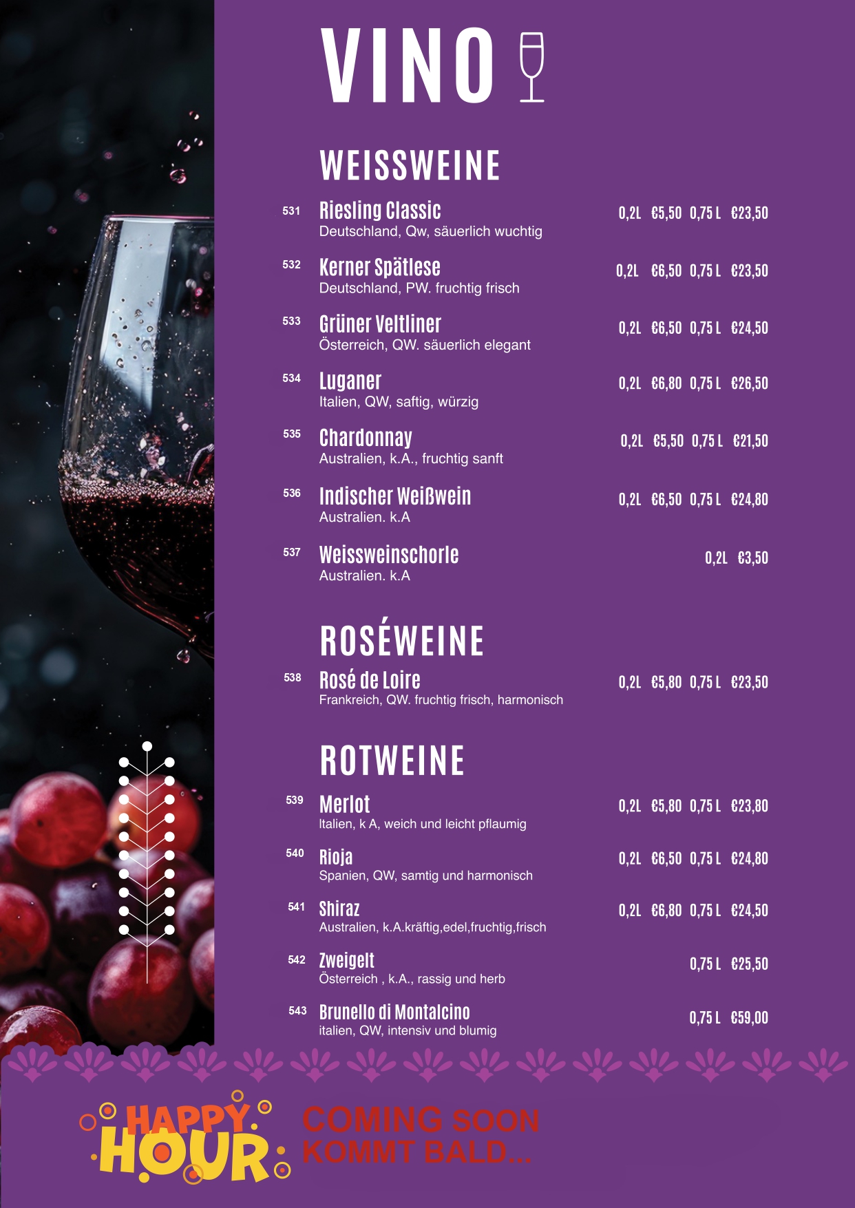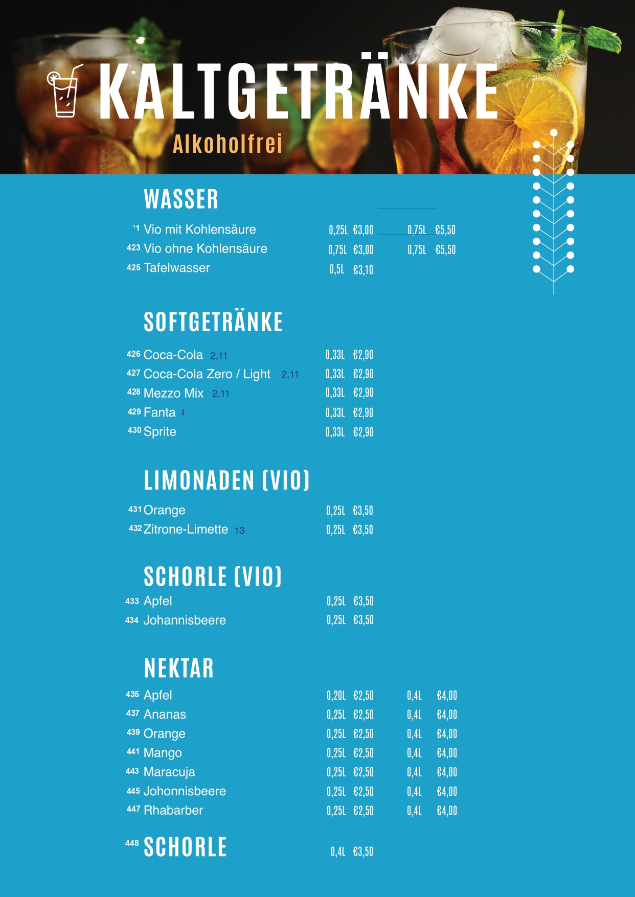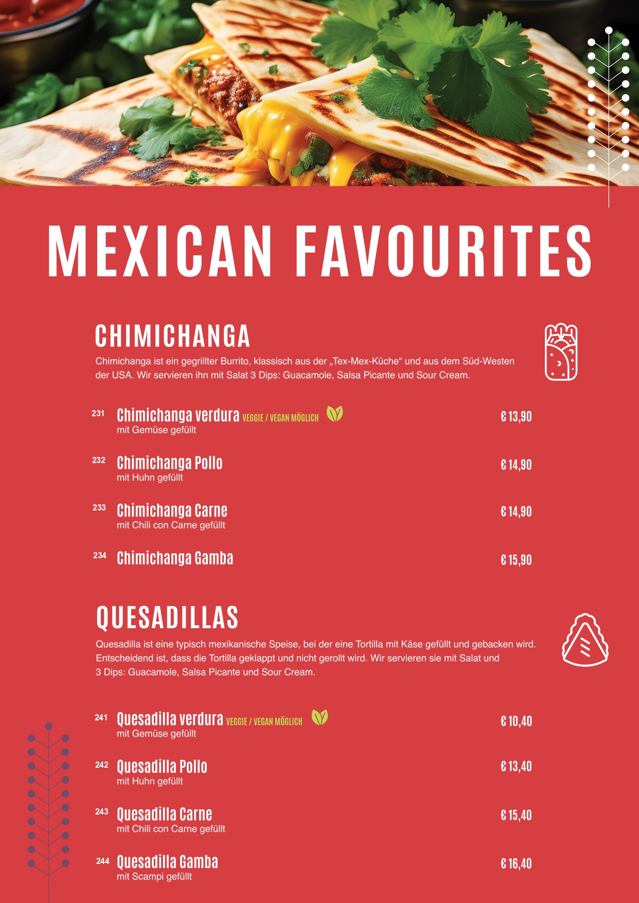 • Speisekarte
